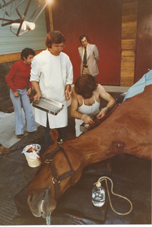 En chirurgie avec son associé Philippe Jeanmonod à la Calèche à Marcoussis ← Retour à la galerie photo <►>
